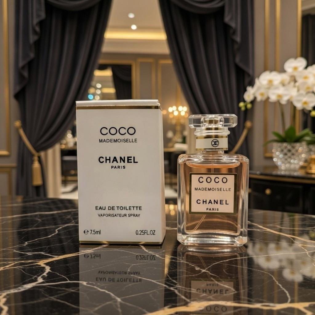 & Free ShippingCoco Mademoiselle Eau de Toilette, la version fraîche et lumineuse de l’emblématique Coco Mademoiselle Chanel. En miniature 7,5 ml avec vaporisateur, idéale pour voyager ou tester cette fragrance intemporelle.