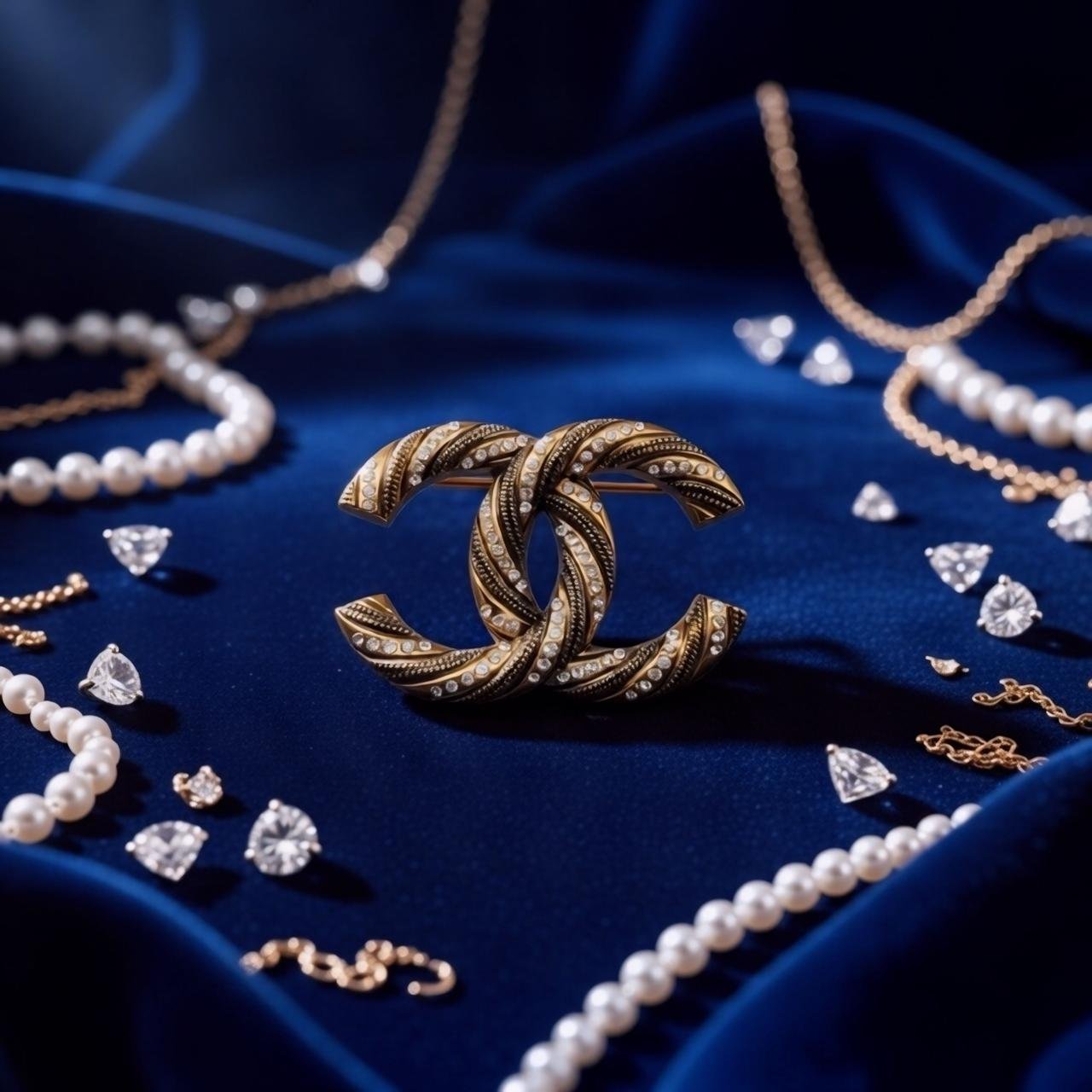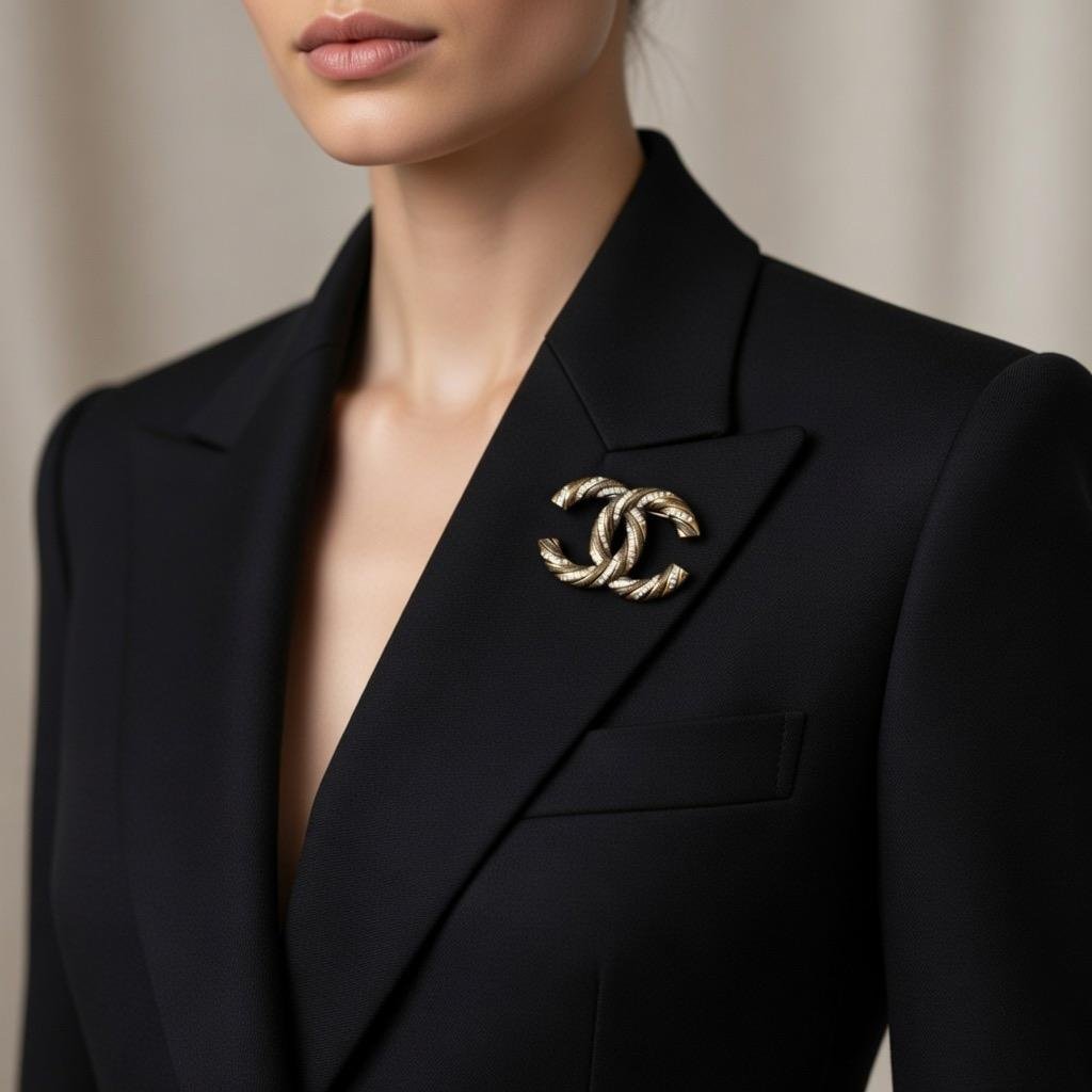 & Free ShippingBroche emblématique Chanel en double C entrelacés, sublimée par un motif torsadé (cordes entrelacées texturées) et entièrement rehaussée de strass scintillants alignés le long des courbes – une pièce d’exception qui rayonne de glamour et de raffinement absolu.