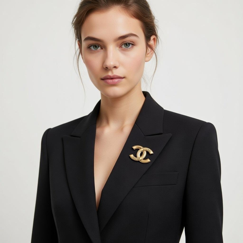 Réalisée en métal doré sophistiqué avec un effet texturé et sculpté, cette broche apporte une touche de glamour audacieux et féminin, fidèle à l’héritage Coco Chanel. Le design courbé et structuré met en valeur les gravures nettes et l’éclat doré luxueux.