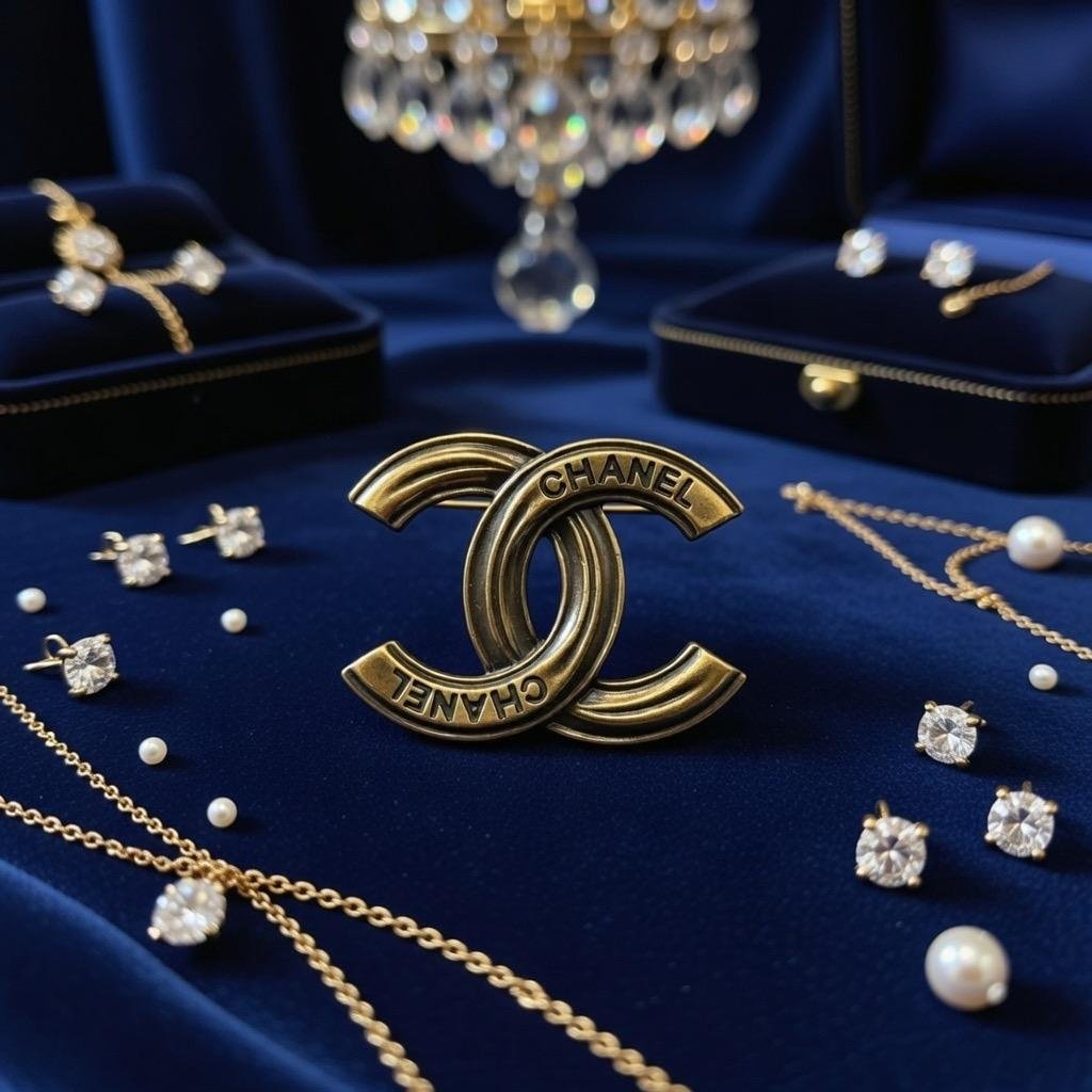 Broche signature Chanel en double C entrelacés, ornée de l’inscription emblématique “CHANEL” gravée directement sur les arcs supérieurs et inférieurs – une pièce iconique et ultra-raffinée qui incarne l’élégance intemporelle de la maison à Paris.