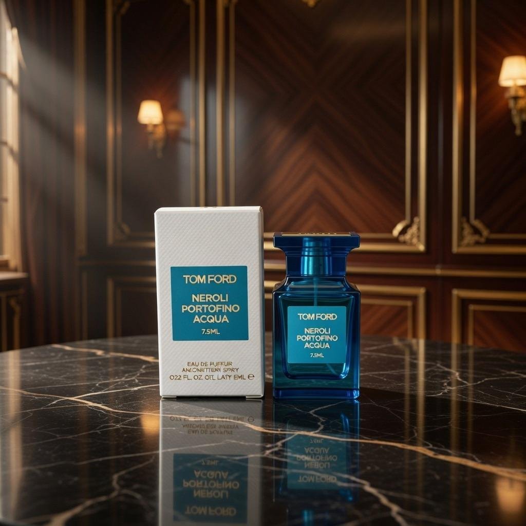 Discover the invigorating freshness of Tom Ford’s Neroli Portofino Acqua, a sophisticated take on aquatic elegance. Perfectly sized at 7.5 ml with a convenient vaporizer, this mini Eau de Parfum embodies Mediterranean charm in a sleek turquoise bottle adorned with a luxurious golden cap.