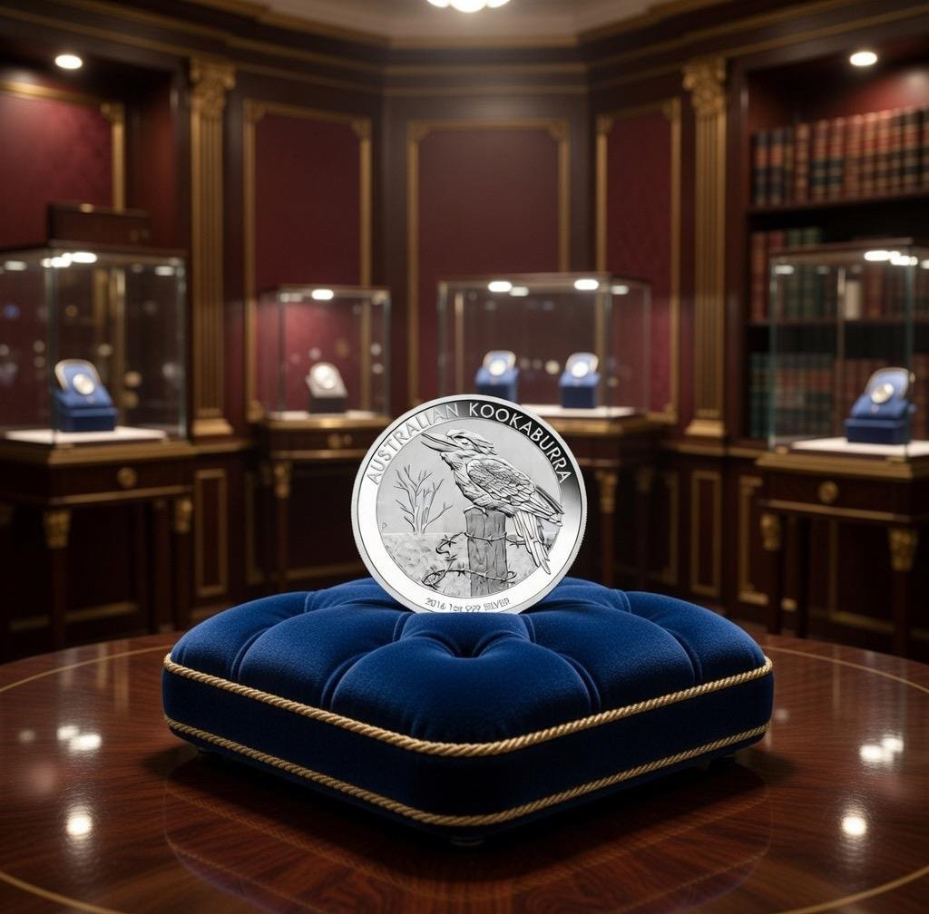 Cette magnifique pièce en argent représente le célèbre Kookaburra, un oiseau iconique reconnu pour son chant distinctif. Elle est finement gravée avec un souci du détail remarquable, mettant en scène le kookaburra posé élégamment sur une branche.