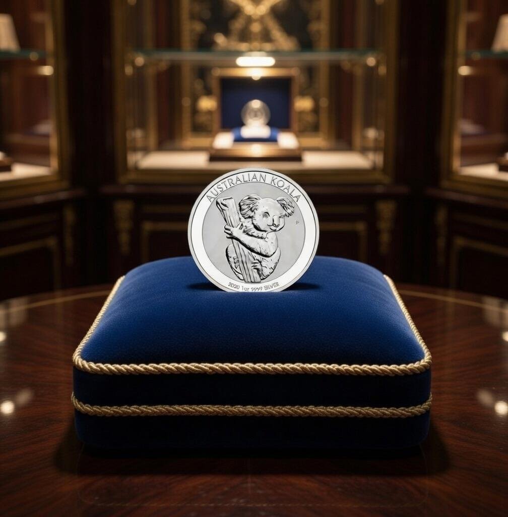 Cette superbe pièce célèbre le célèbre koala australien, véritable emblème de la faune unique de l’Australie. Parfaitement gravé, le koala est représenté agrippé à une branche d’eucalyptus, avec des détails minutieux qui témoignent d’un savoir-faire exceptionnel. Son design artistique en fait un ajout remarquable à toute collection.